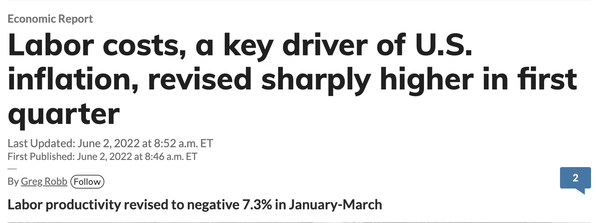 Whilst we are seeing 8.2% year on year wage growth – worker productivity is falling. For example, for Q1 it shrank 7.3% — the largest quarterly decline since the third quarter of 1947.