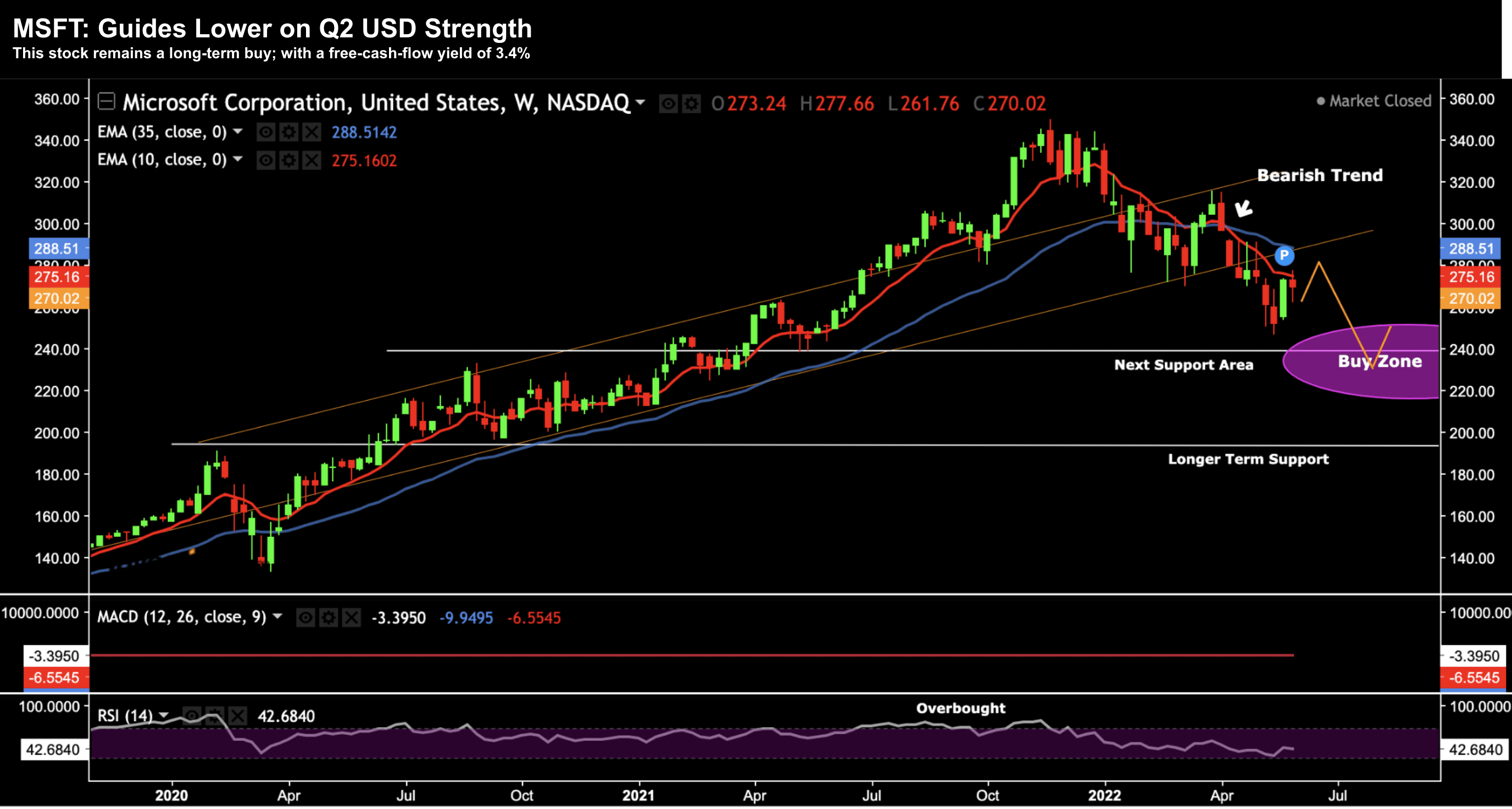 And if you don"t own MSFT today – buying the stock at $240 is an excellent level to start adding to your exposure.
