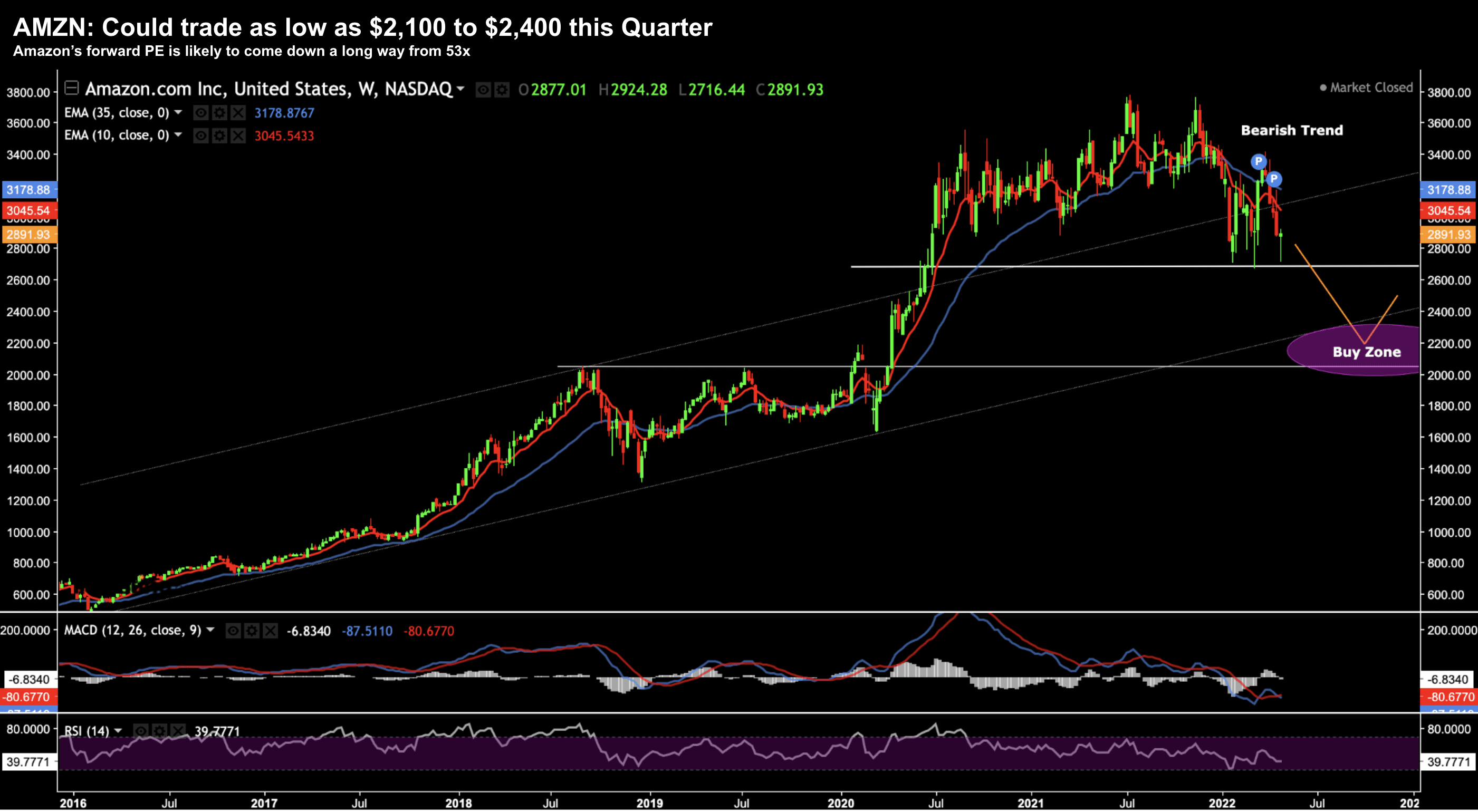 Tomorrow Amazon is likely to open between $2,500 and $2,600.