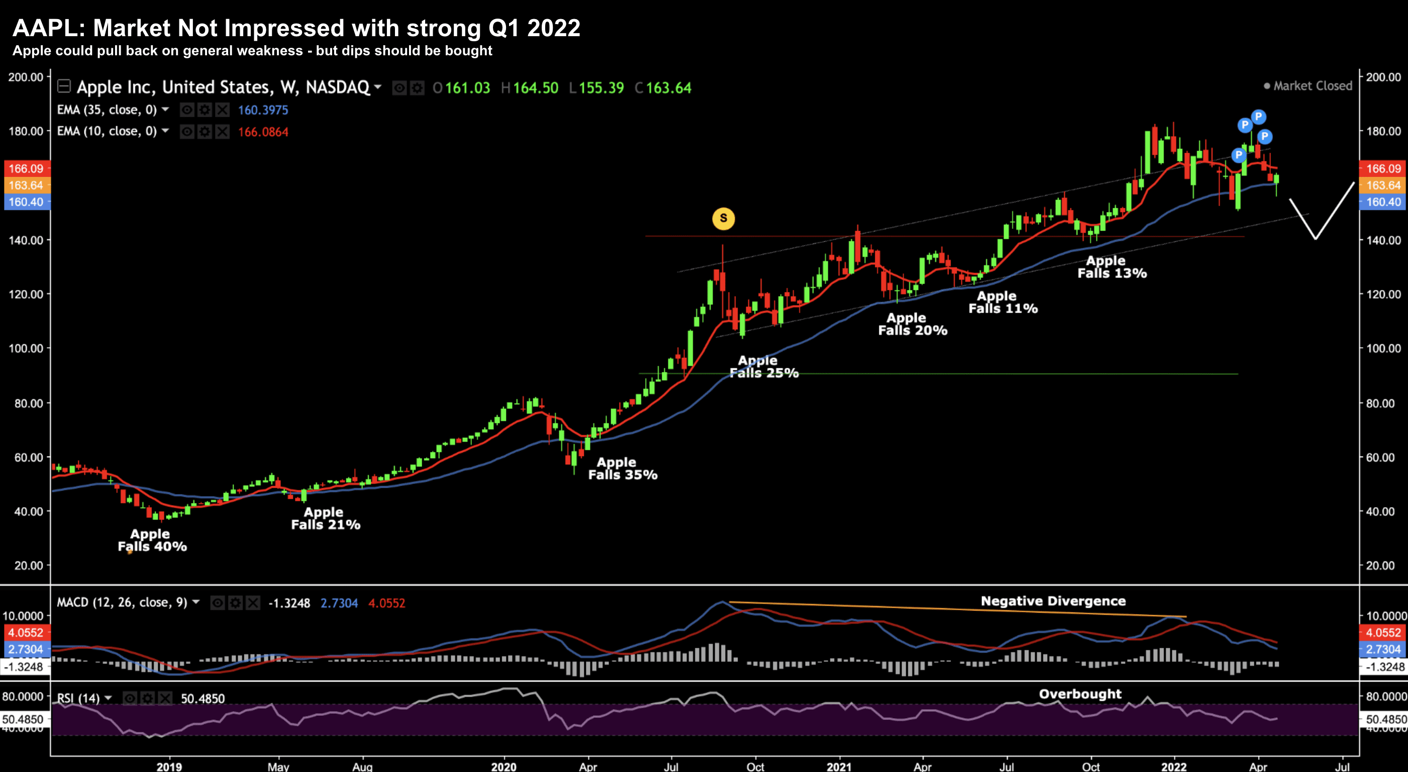 From mine, if the stock falls down to around $140 to $150 on broader market weakness – I would be a buyer.
