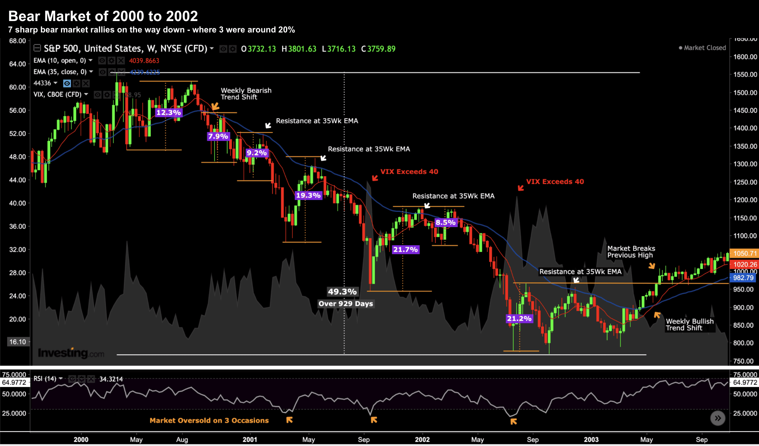As a parallel, I dimensioned the (sharp) bear market rallies we saw in 2000 and 2008 here.