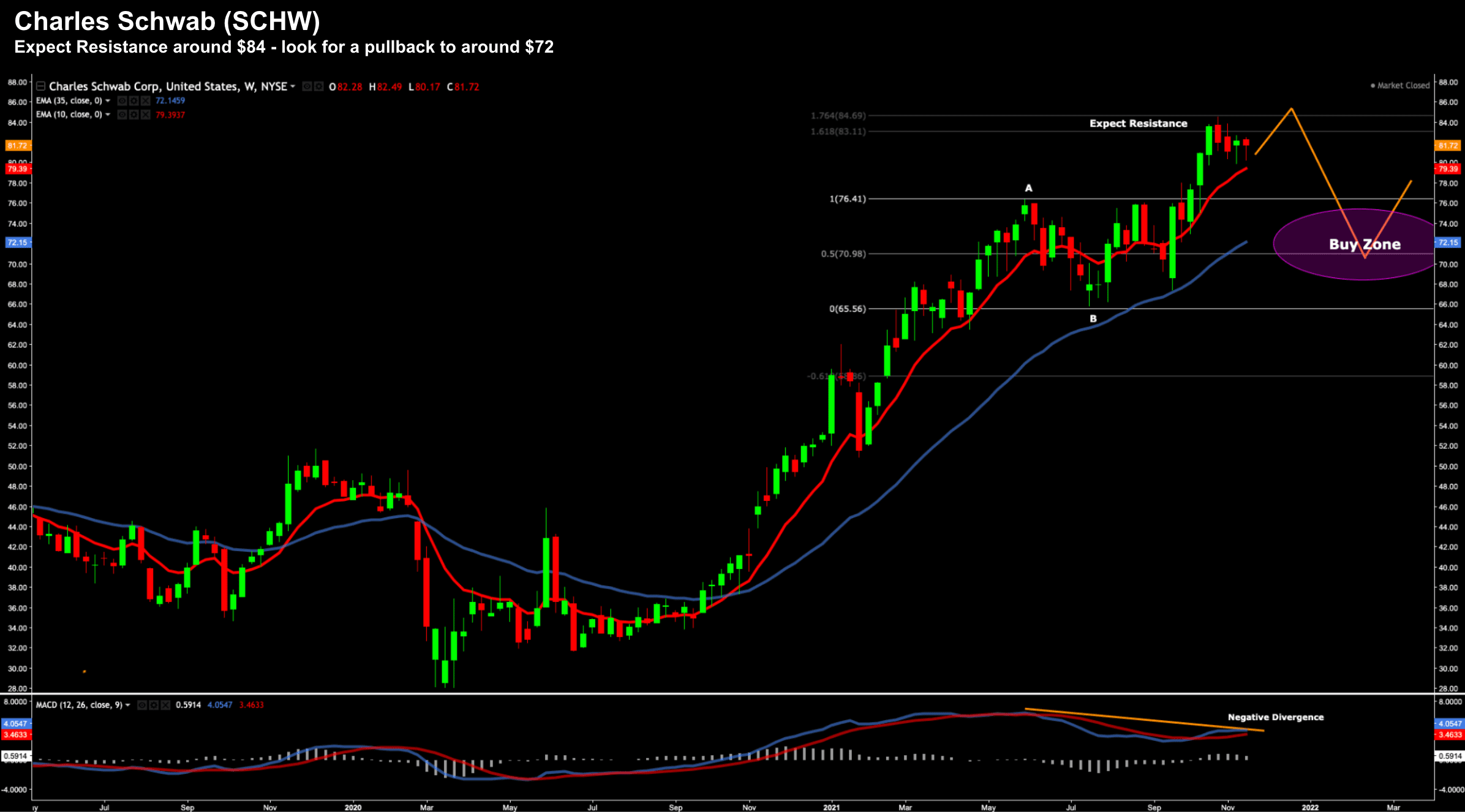 Technically I see overhead resistance around in the current zone (i.e. ~$84)
