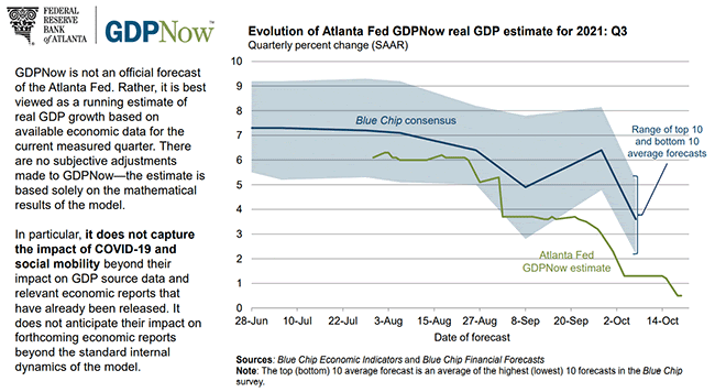 This week, the Atlanta Fed GDPNow forecast expects US GDP growth of less than 1.0% in Q4