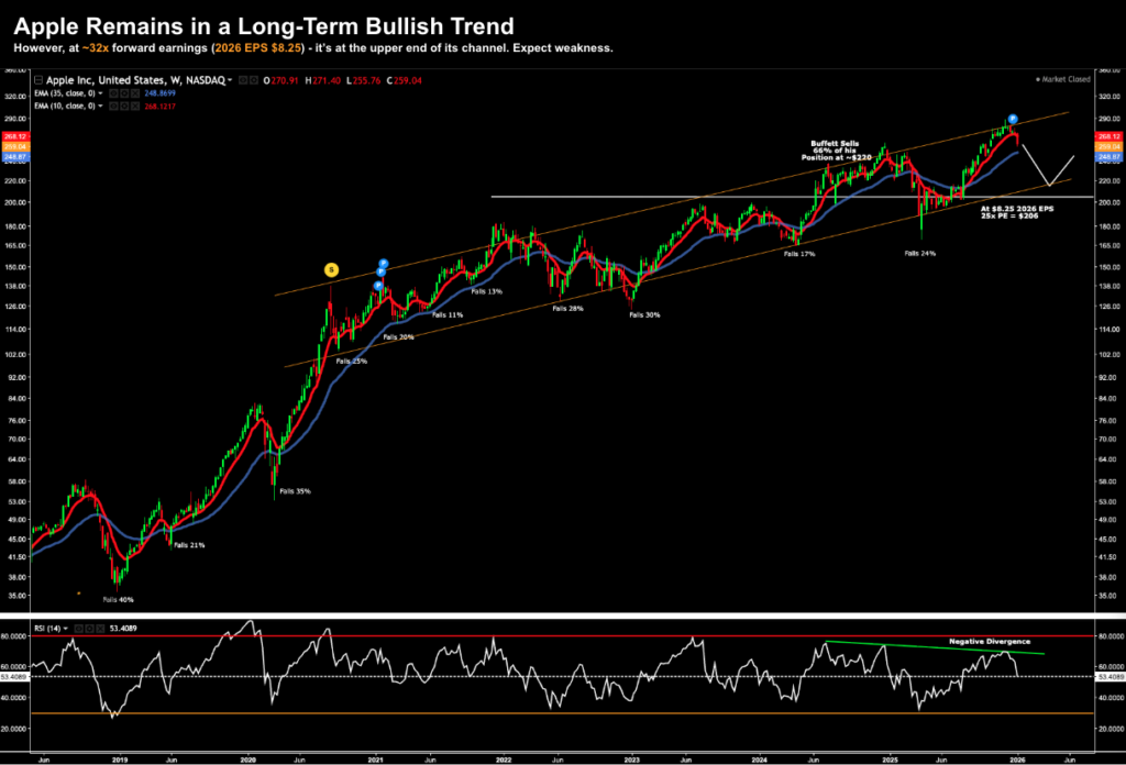 At present, the market is willing to pay ~31.5x forward earnings (based on projections of $8.50 per share in 2026)