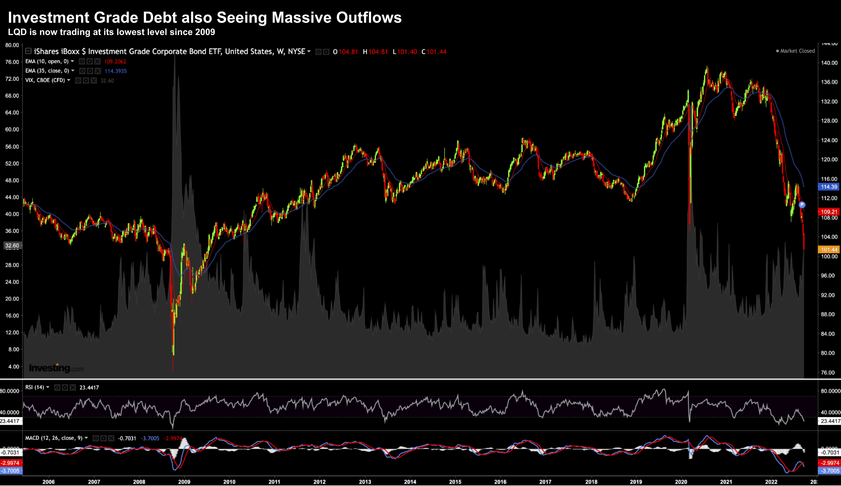 Not unlike HYG – LQD is now trading at its lowest level since 2009.
