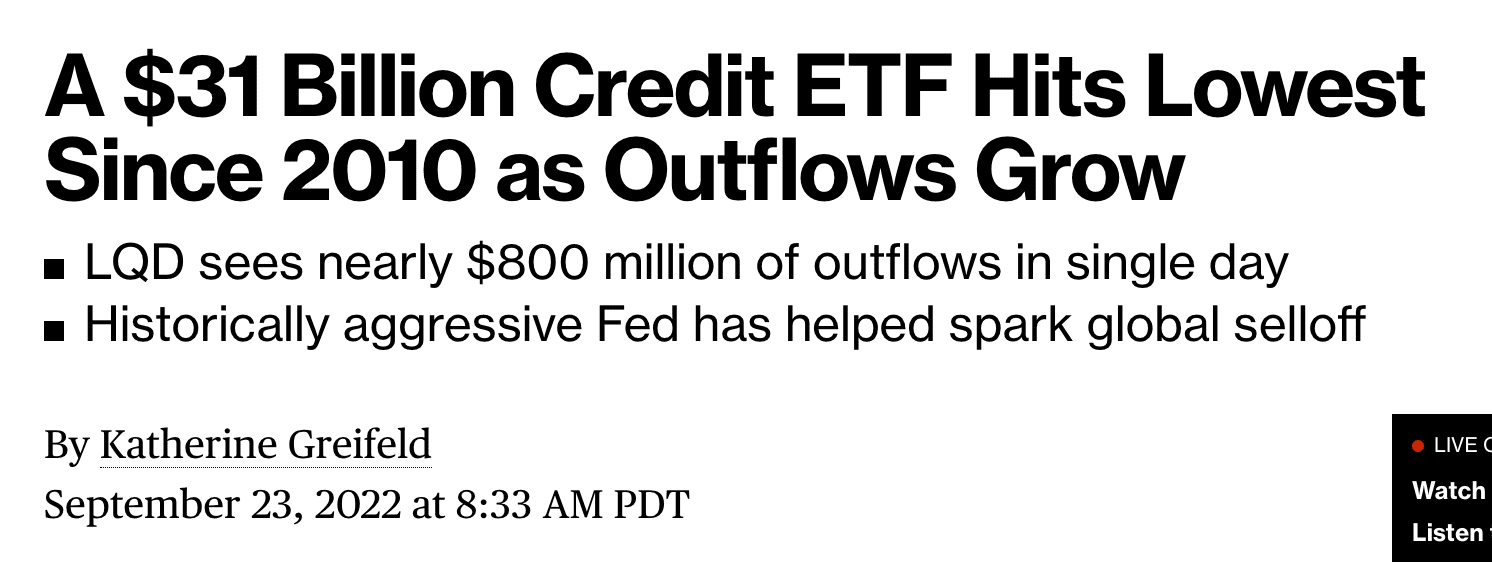"LQD is trading 10% below its 200-day, that"s only reserved for panic type moves — financial crisis and Covid," said Todd Sohn, ETF strategist at Strategas Securities.