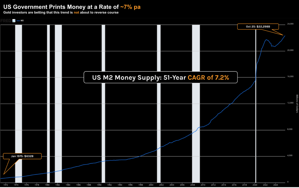 Below is the 51-year trend in M2 money supply: