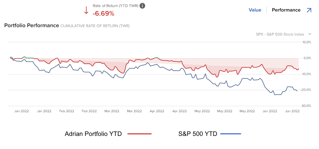 For the first 6 months of the year – I outperformed the S&P 500 by ~14%.