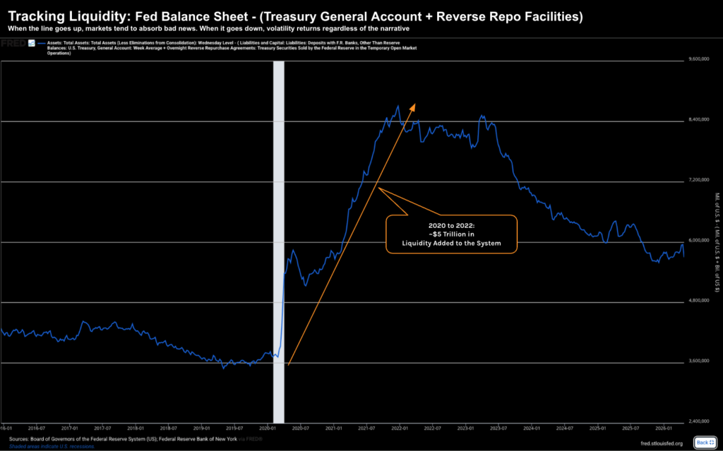 The Formula: Fed Balance Sheet – (Treasury General Account + Reverse Repo Facilities)
