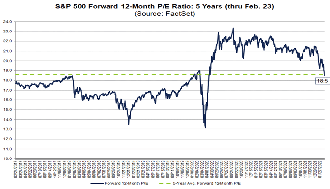 - This places the forward 12-month P/E ratio for the S&P 500 (on that date) at 18.5x