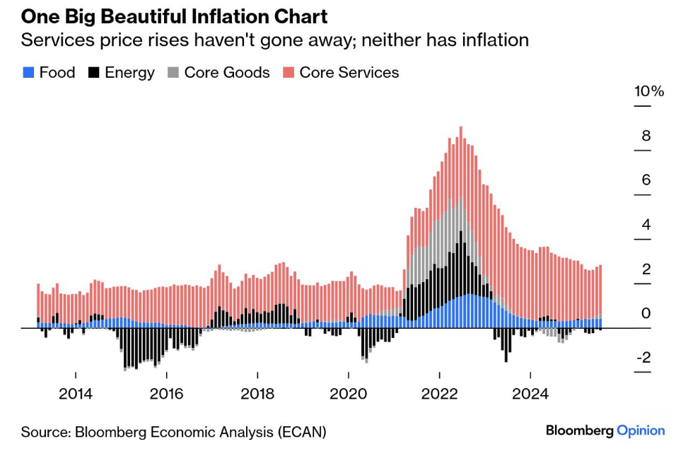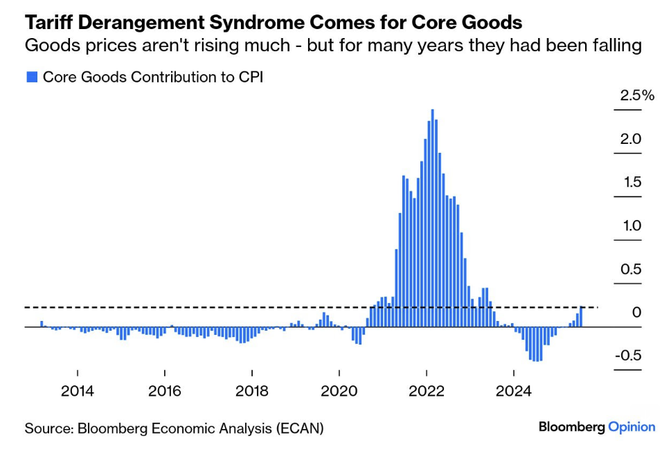 Bloomberg reported tariffs have their most evident effect on core goods, which are scarcely visible in the big chart.