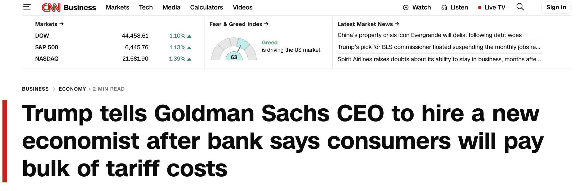 For example, recently (Trump) appointed Steven Miran, told CNBC there is “zero macro-economically significant evidence of price pressures from tariffs.”
