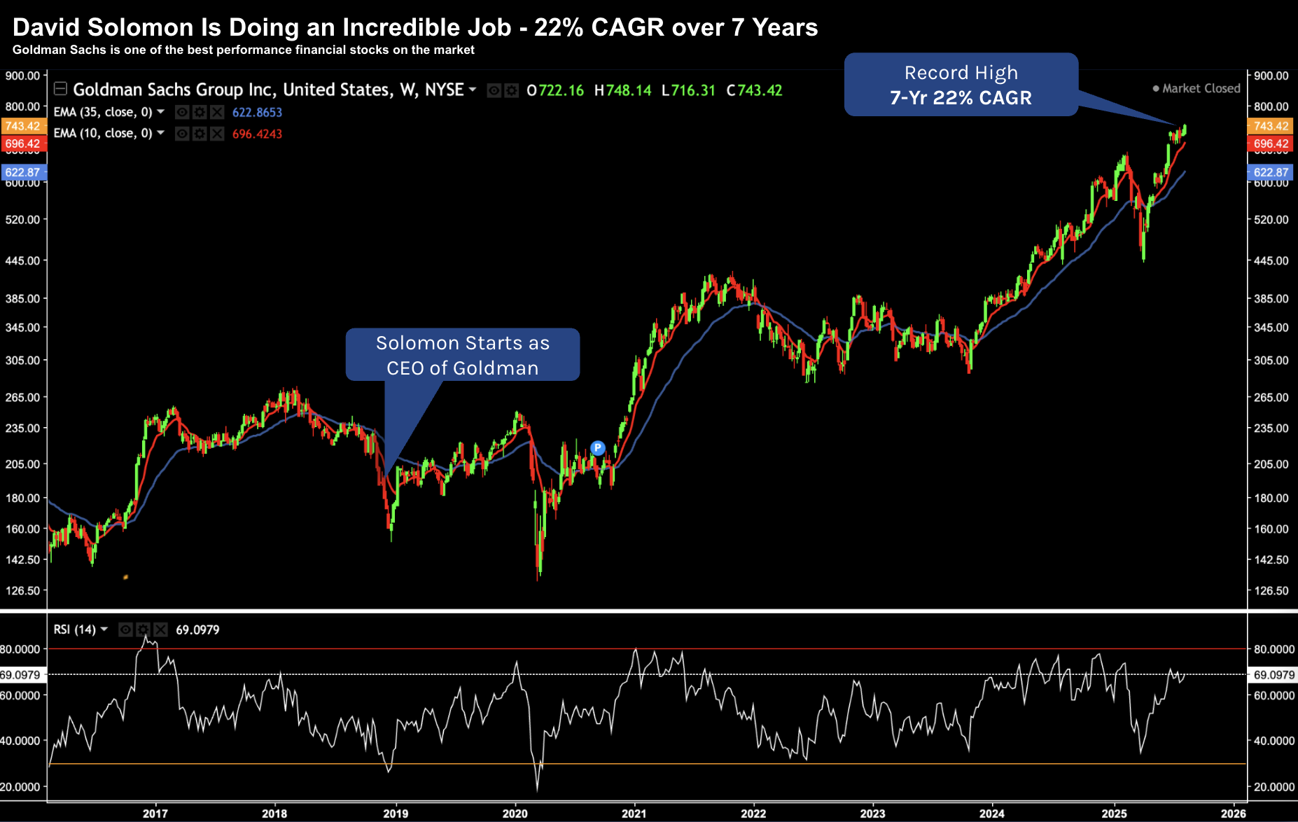 During his (almost) 7-year term as CEO – he has delivered a 22% CAGR – making Goldman one of the best performing financial stocks on the market.