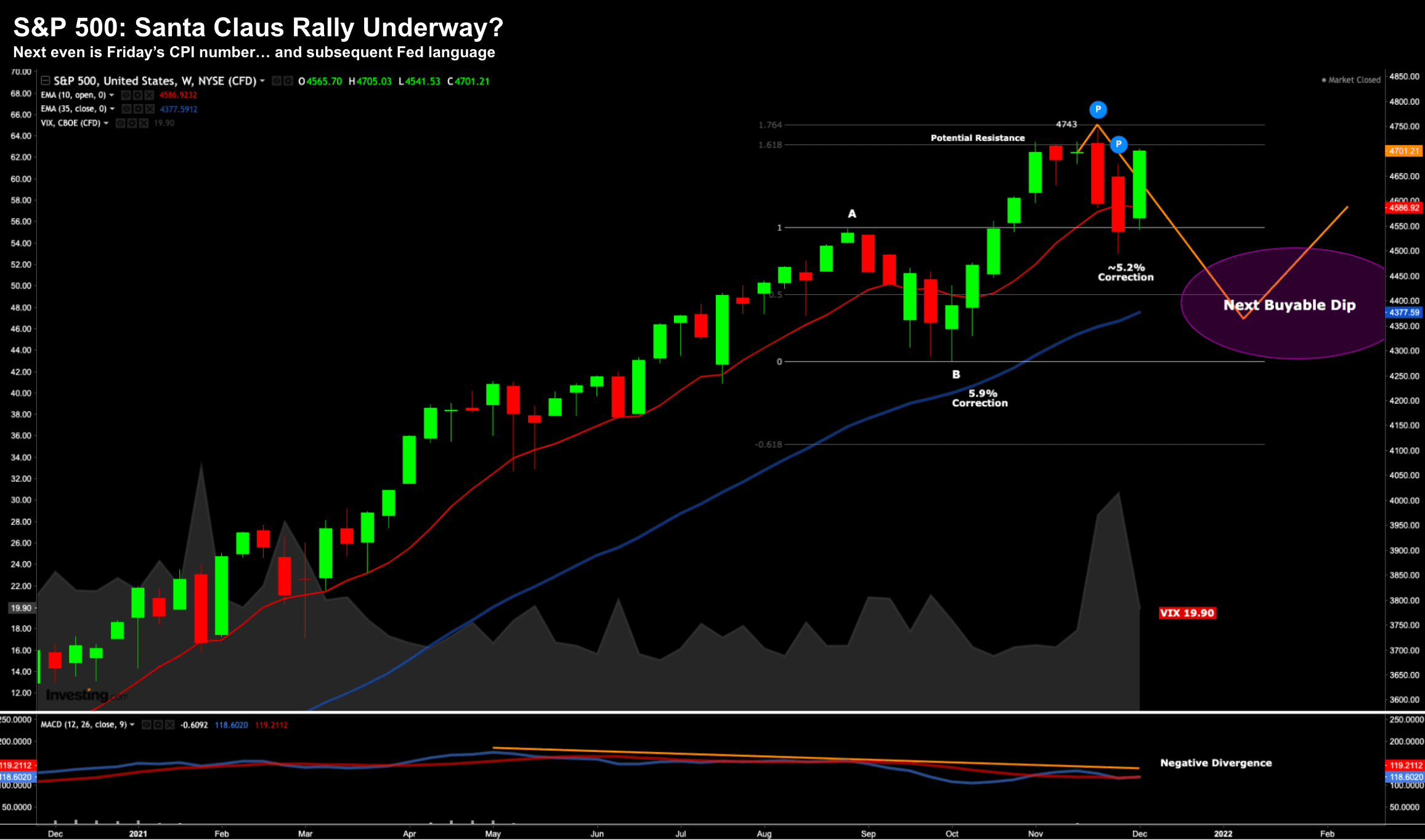 Are the lows in before Christmas That's hard to know. Stocks have rallied strongly to start the week after last week's ~5.2% pullback. It's been 'higher-risk' names leading the rebound... with the Russell 2000 and tech surging.