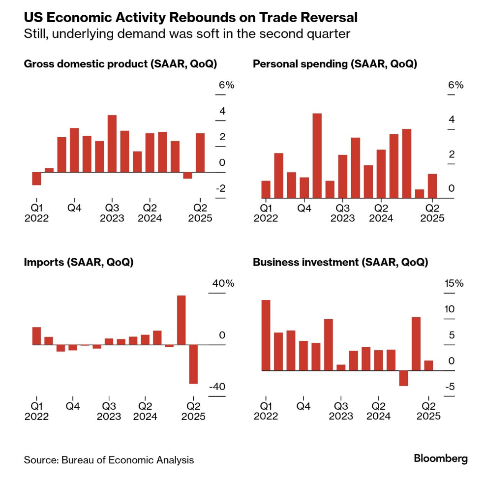 Bloomberg reported that inflation-adjusted gross domestic product, which measures the value of goods and services produced in the US, increased an annualized 3% in the second quarter.