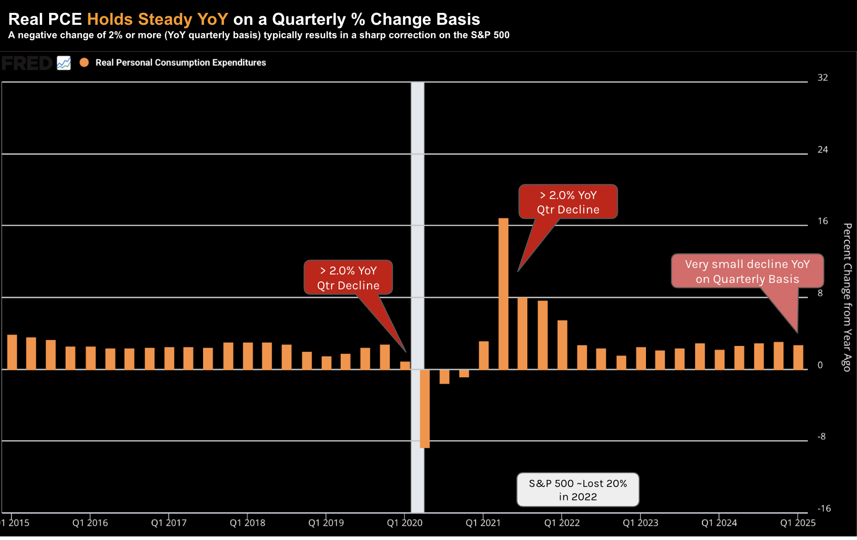 For example, we saw Real PCE plunge YoY in Q2 2021 – where the S&P 500 went on to experience a full year decline of ~20% over 2022