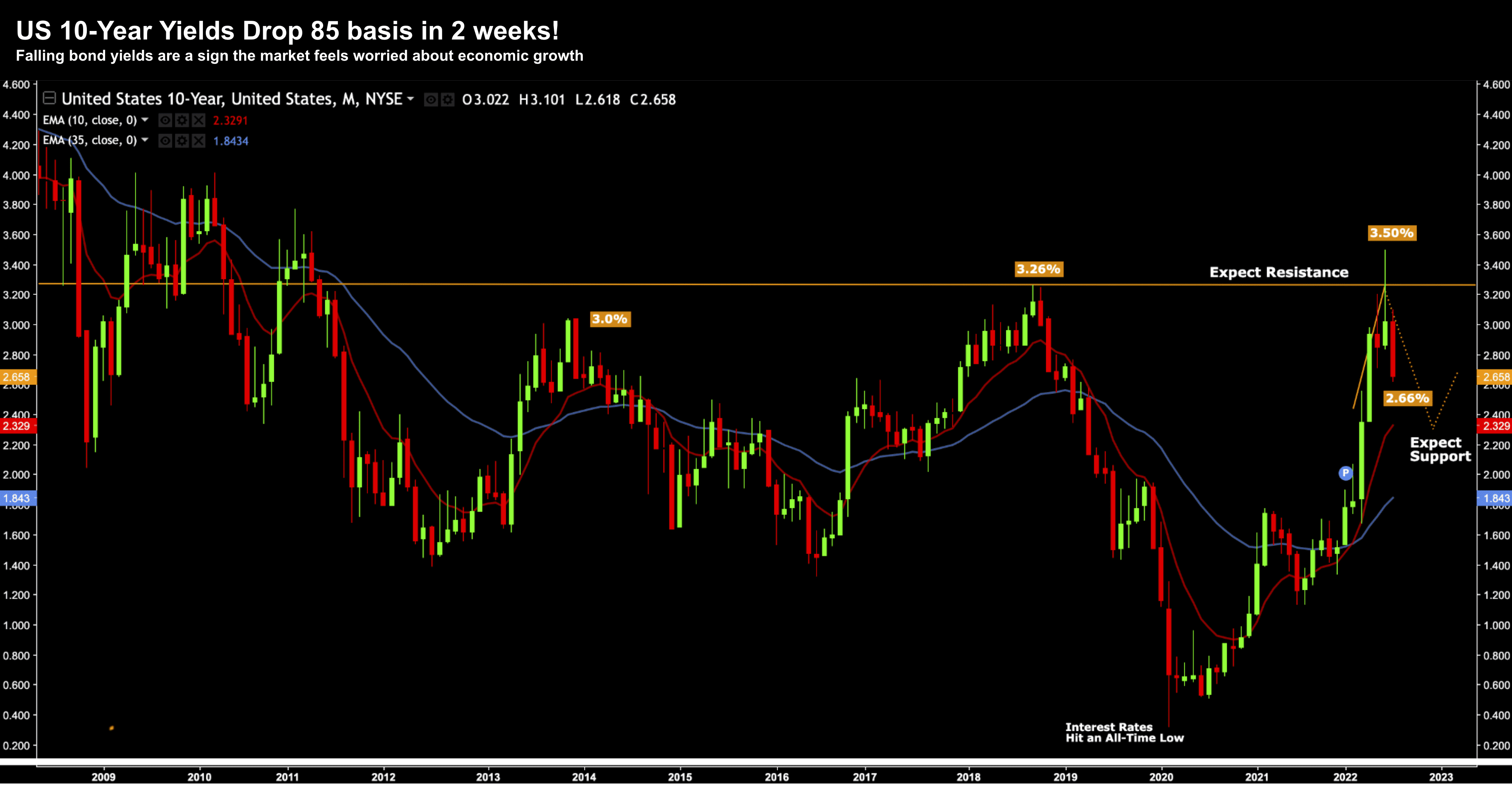 Turns out we made a "false break" of the 2018 highs (3.50%) – a strong reversal signal.