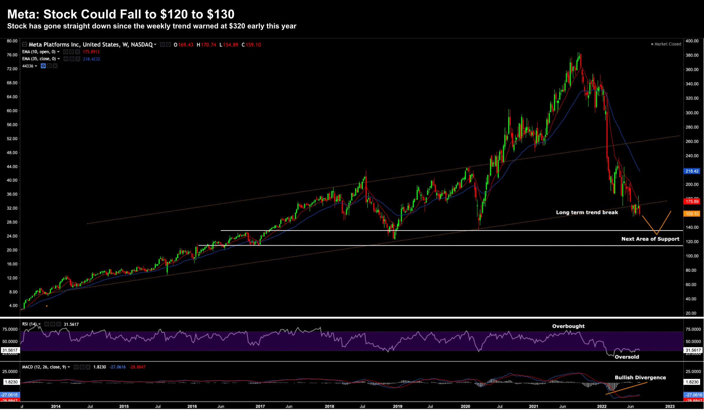 The bullish weekly trend ended for Meta earlier this year around $320.