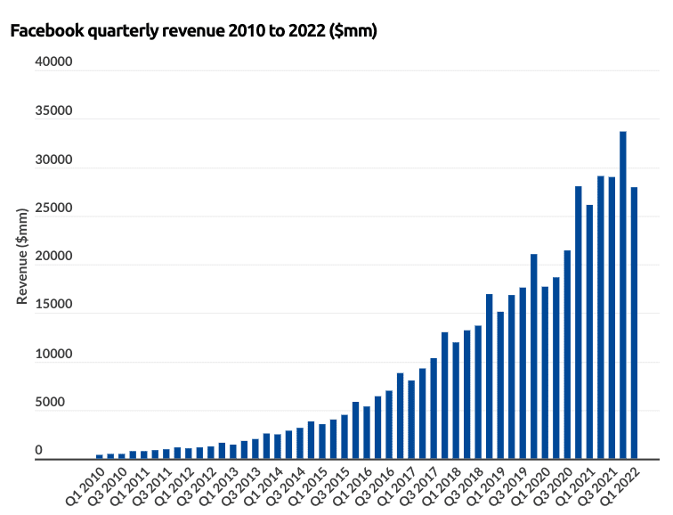 As an aside, below is the revenue trend for Meta.