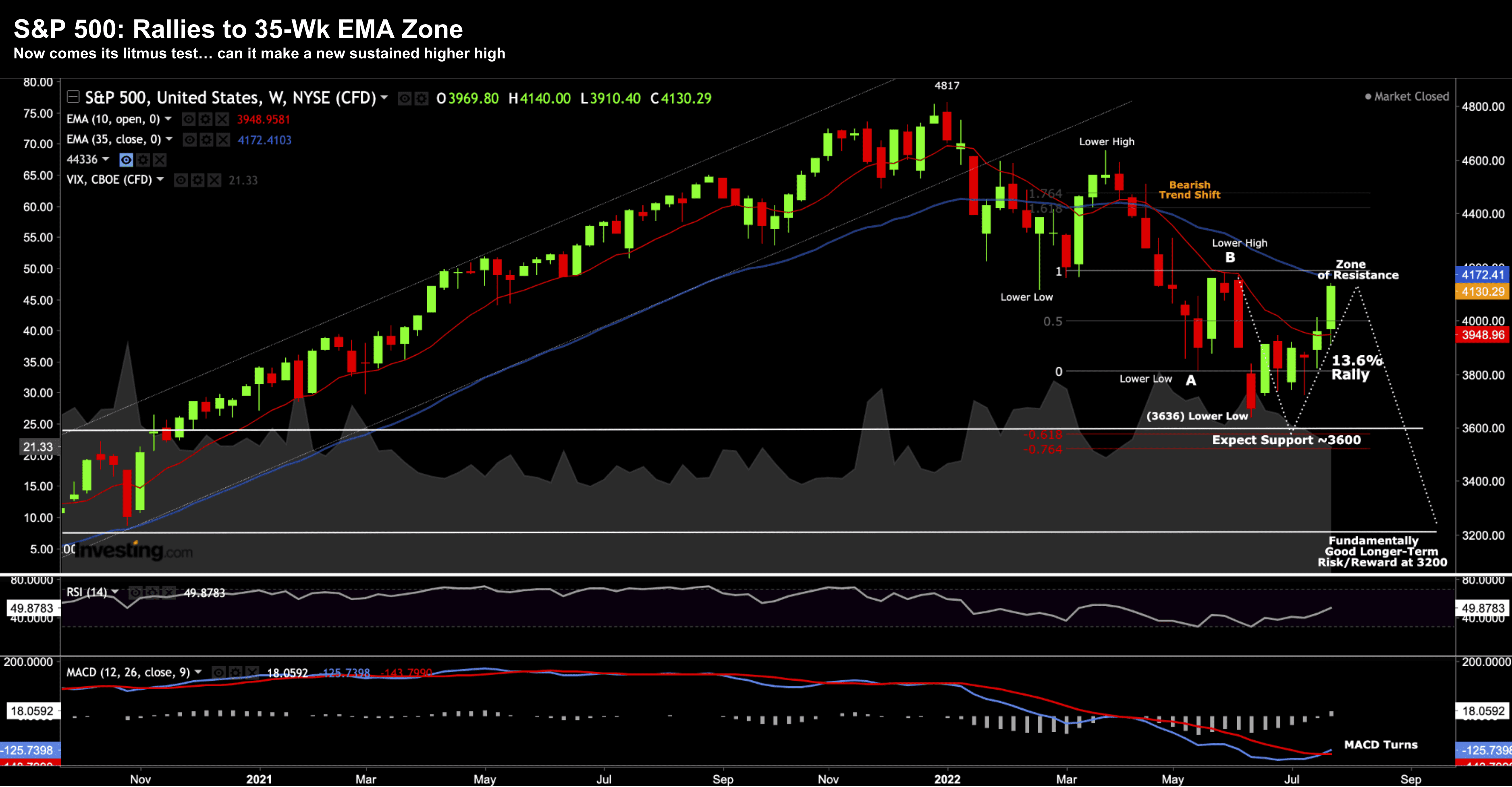 This week we closed 4130…  just below the 35-week EMA (in blue).