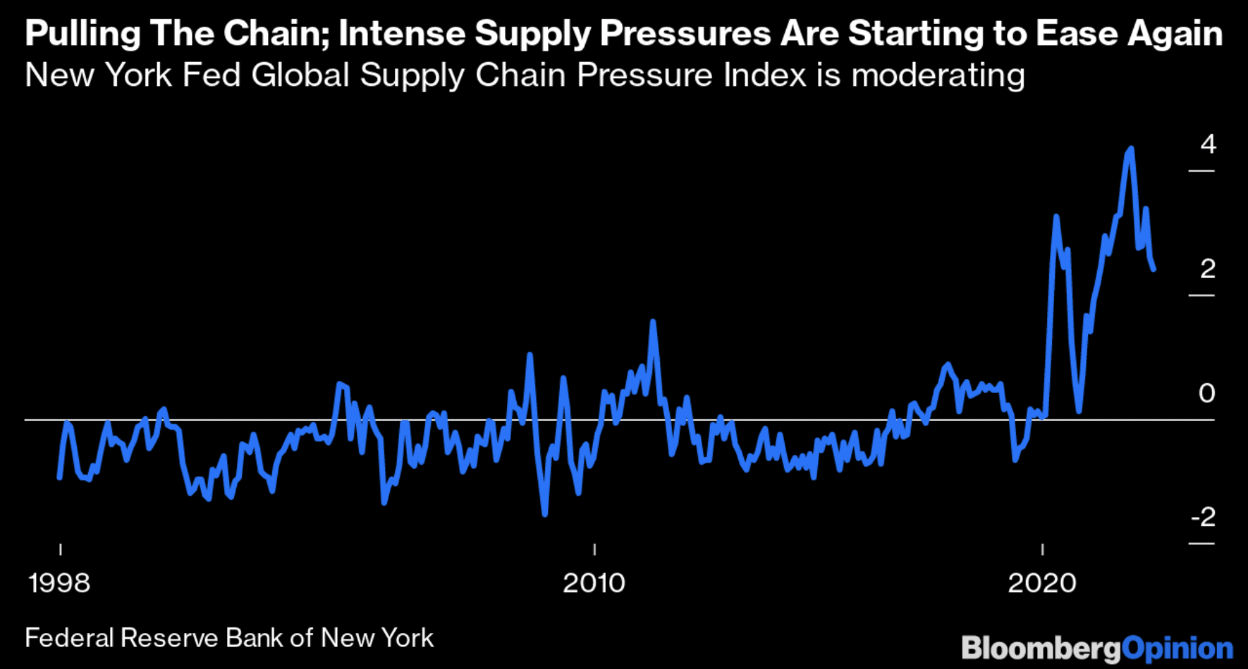 Adding to yesterday"s missive – the New York Fed"s index of global supply chain pressure, which blends shipping and freight costs and other measures of how swiftly supply chains are moving.