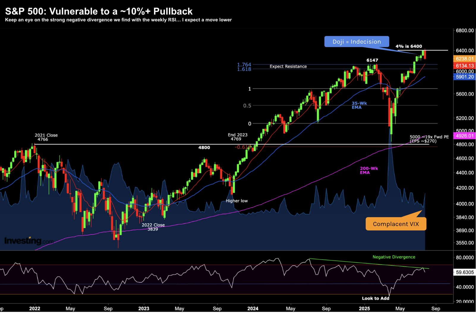 It would be prudent to lower your exposure with the S&P 500 above 6,000 — looking to add when valuations offer a better longer-term risk reward.