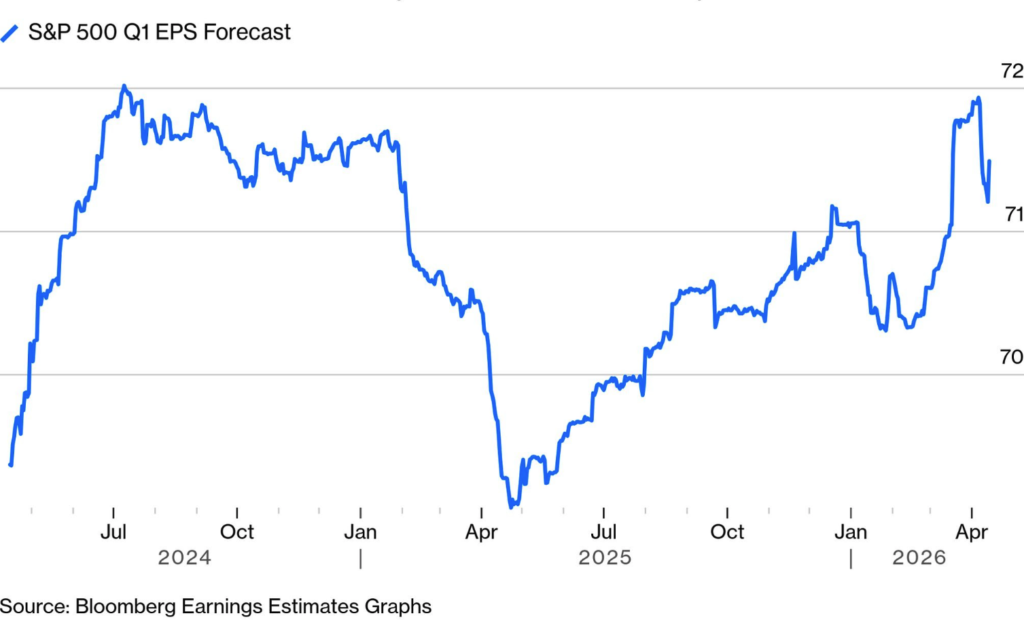 Below is a chart from Bloomberg"s Earnings Estimates service – which shows that forecasts for S&P 500 first-quarter earnings are easing.