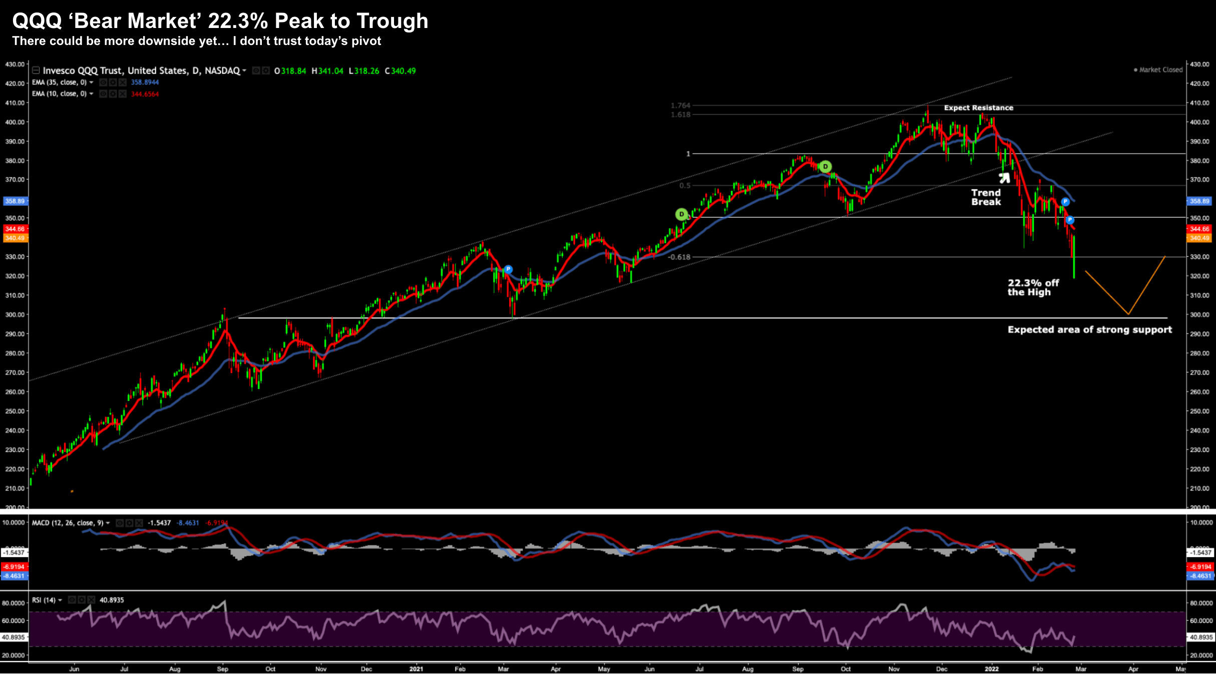 With the added Russian / Ukraine uncertainty – Powell will most likely pander to the market and raise rates only 25 basis points in March (and not 50).