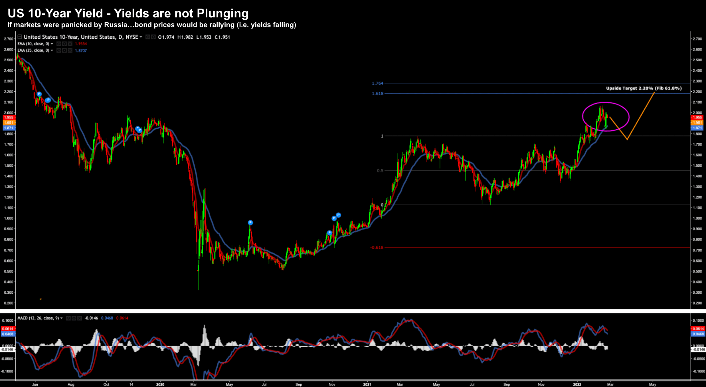 What the daily chart shows is how these yields have barely moved post Russian"s aggressive invasion.