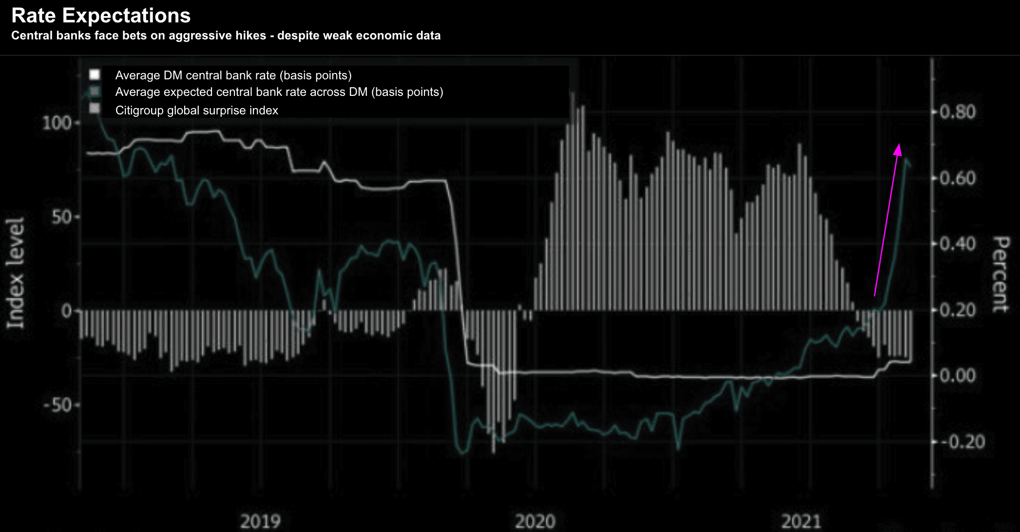 For example, look for rate rises as early as June 2022… vs expectations of the end of 2023 only a few months ago.