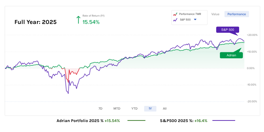 As for my own performance in 2025 – I maintained exposure to high quality stocks (where Google was my largest position) – however exercised some caution by remaining in ~35% cash and cash equivalents.