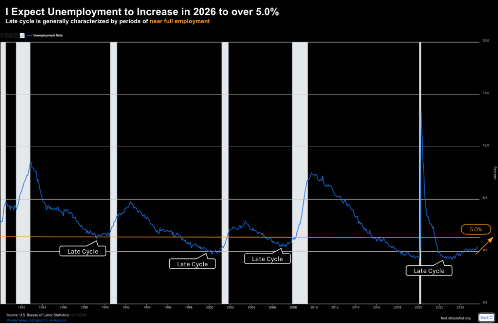 But when I listen to mainstream today – very few people are talking about a possible recession in 2026 (beyond the standard 20% risk which exists in any year)