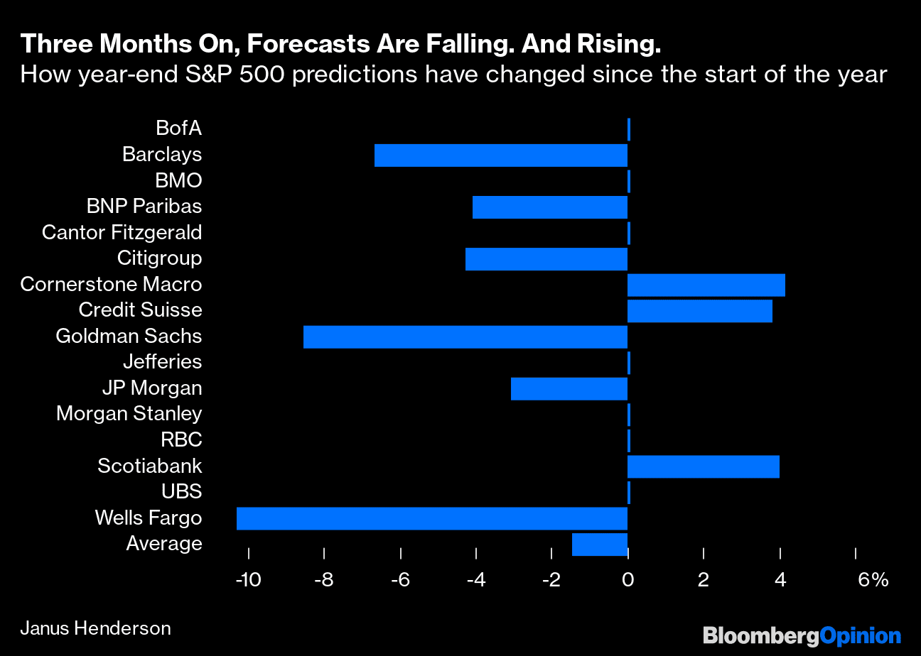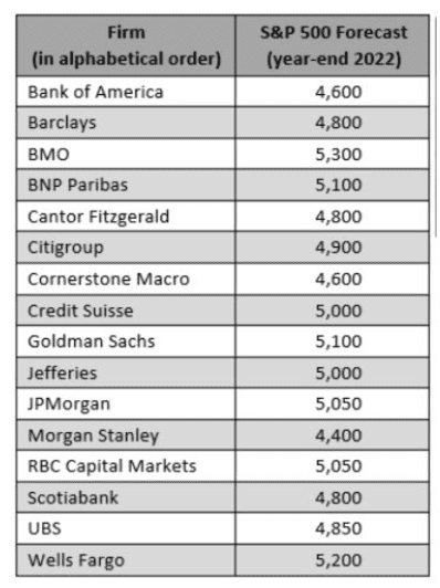 For example, Wells Fargo have slashed their forecast by over 10%… from 5200 (one of the more bullish in Q4 2021) to just 4600