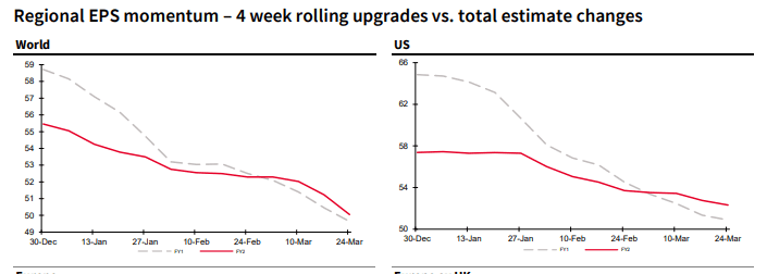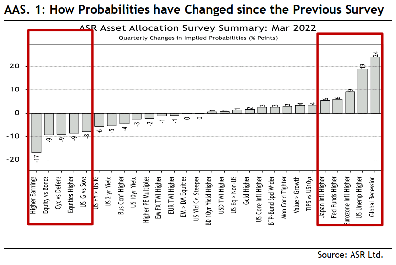 Since the last quarter, the fear of a global recession has risen sharply, accompanied by falling hopes for higher earnings (echoing what I was saying as we closed Q4)