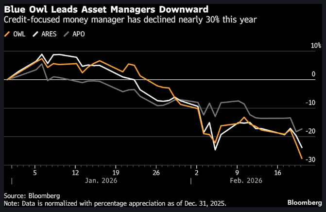 For example, when "semi-liquid" retail funds (like Blue Owl) move from restricting redemptions to freezing them entirely – the pressure will move to the stock market.