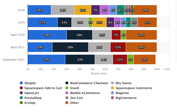 Which begs the question – what market share is Shopify enjoying in this exploding market?