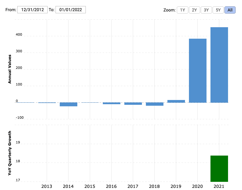 This came in at $453.64M year-over-year for the quarter ending December 31, 2021 – up 18.4% year on year