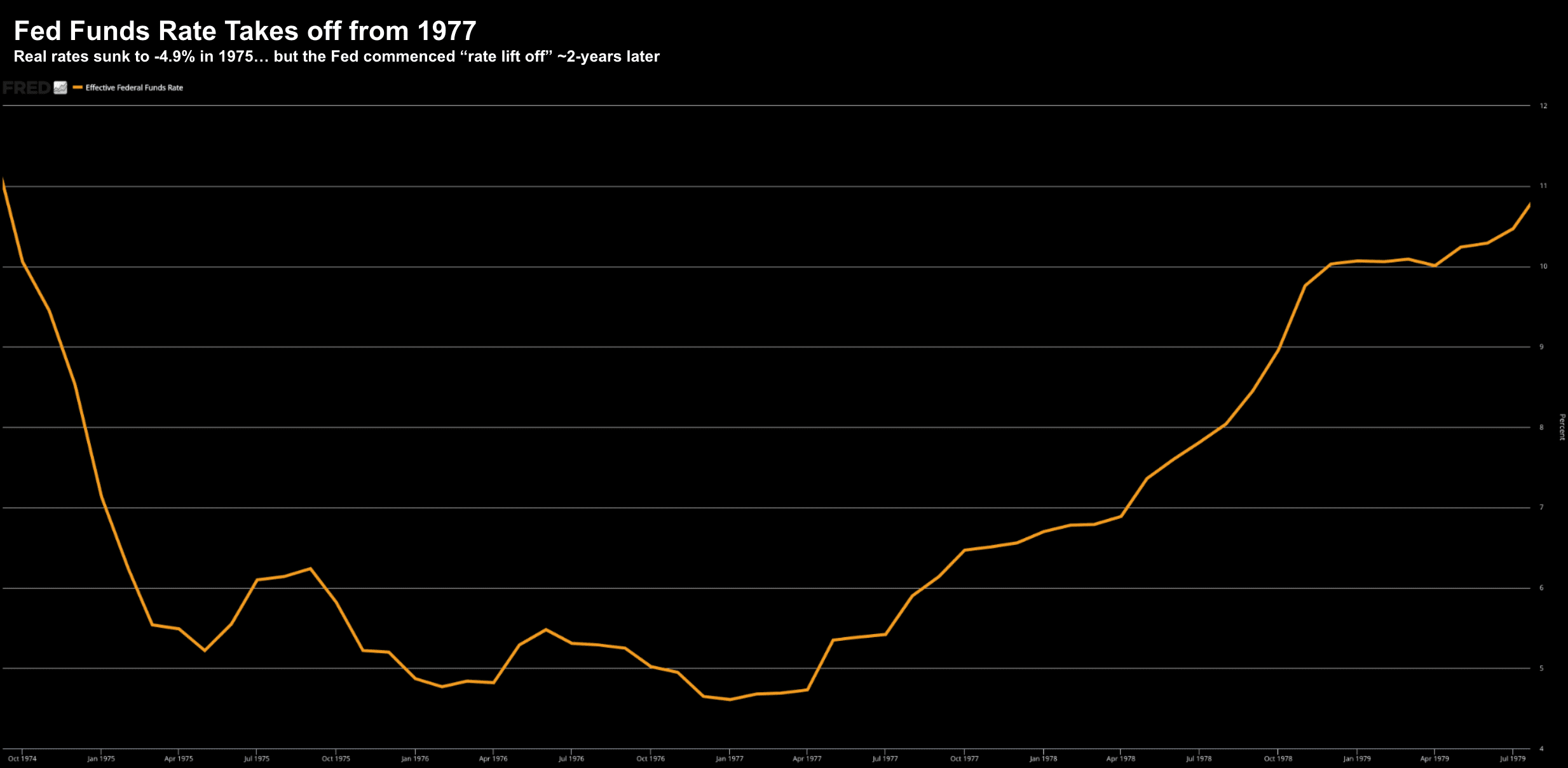 The Fed commenced rate lift-off early 1977 after savers were crushed with higher inflation.